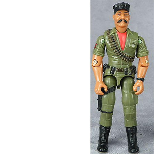However, the Club takes someone who was, to me, a somewhat forgettible figure and make it something very interesting. Using the 90's Battle Corps Gung-Ho body for the figure rather than the somewhat scrawny '83 model bulks up the figure considerably and gives him immediate appeal. But the real stroke of genius is the fact that they used the vintage Gung-Ho head retooled to fit on a ball joint neck |